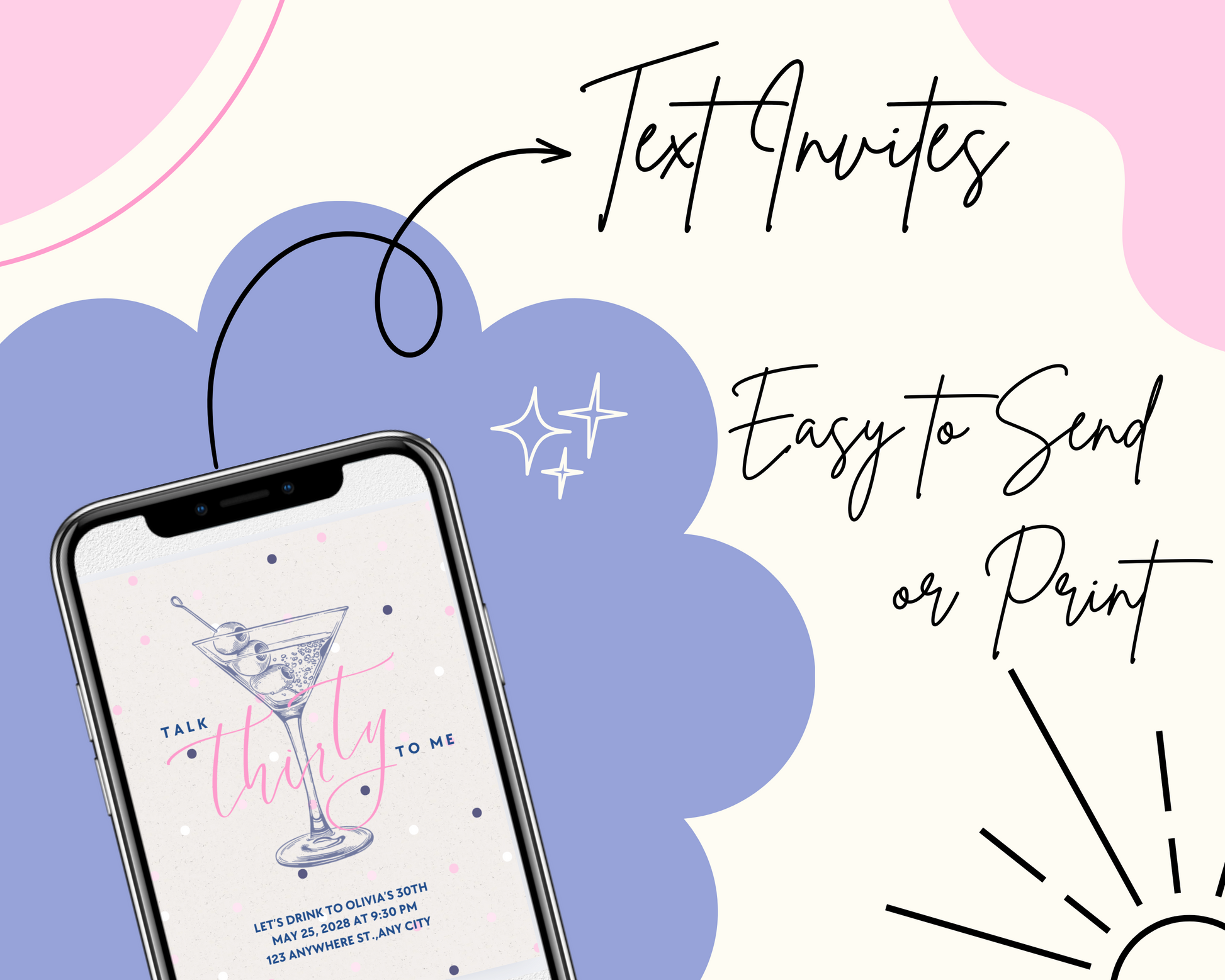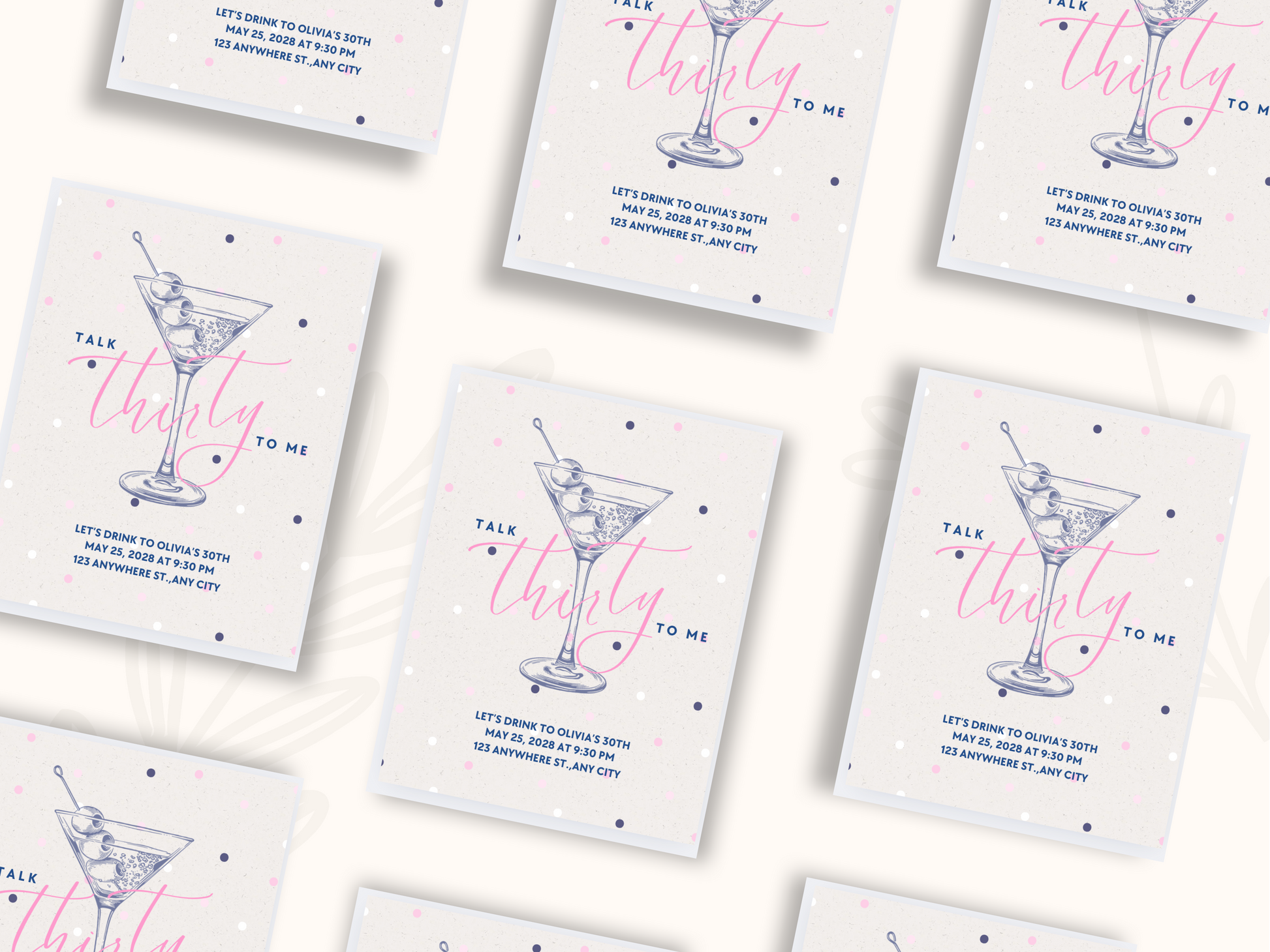 Canva invite Template | 30th Birthday | Tini bit older | Martini theme party | PNG PDF Printable | Canva| Instant Download